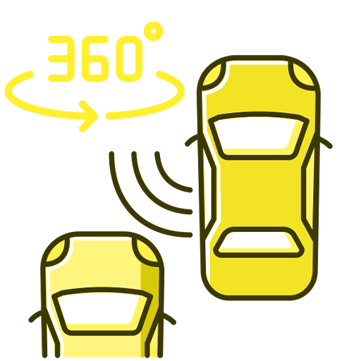 360 degree/Birds Eye view back up camera with safety parking assist alarms.